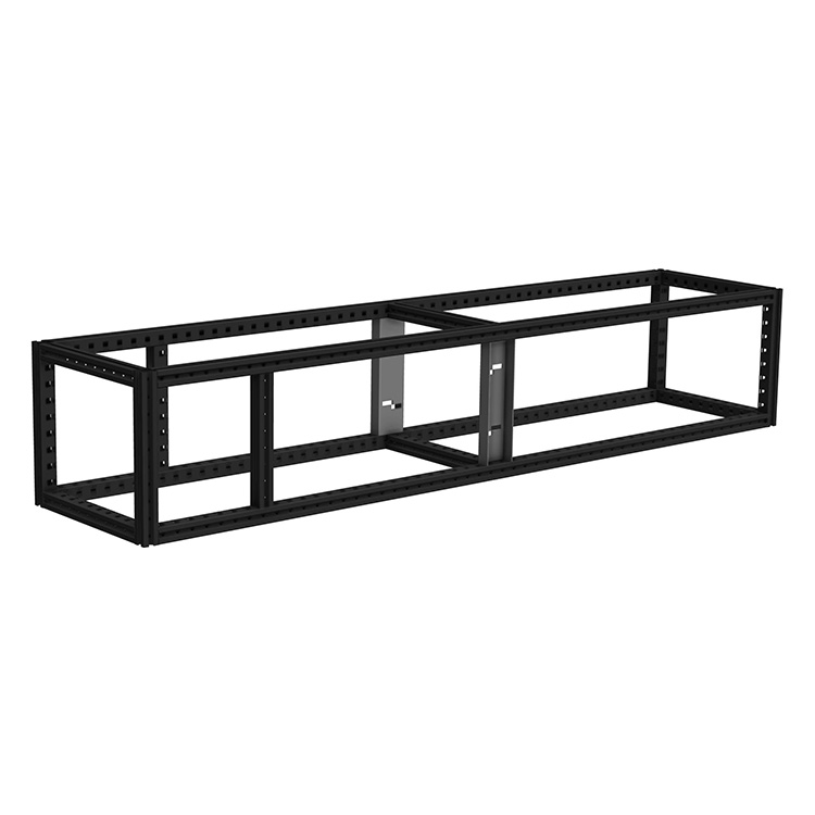 Drawer unit frame for individual configuration of an extra-long drawer unit. The reinforced frame, made from ultra-high strength steel, has a high bearing capacity, which makes it the perfect base for double floors.