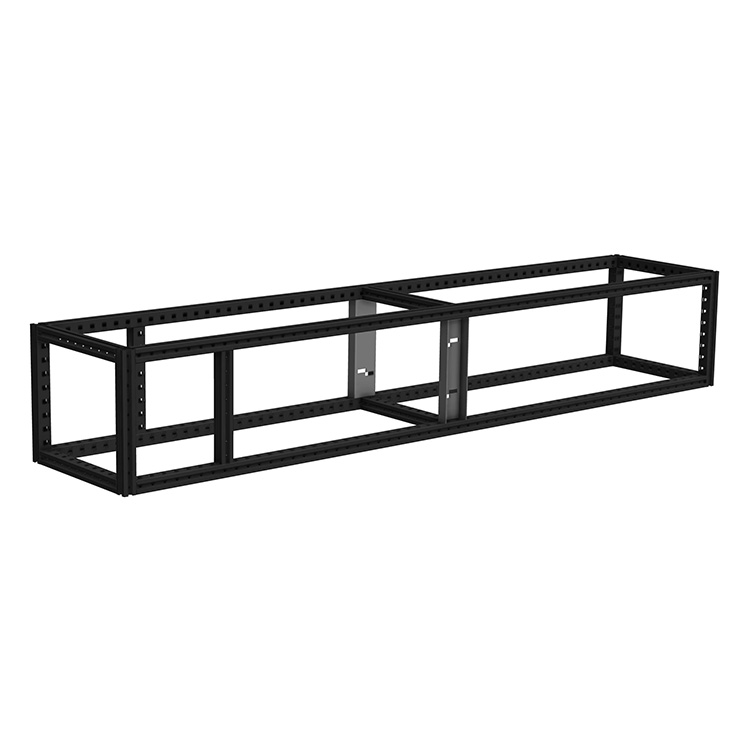 Drawer unit frame for individual configuration of an extra-long drawer unit. The reinforced frame, made from ultra-high strength steel, has a high bearing capacity, which makes it the perfect base for double floors.