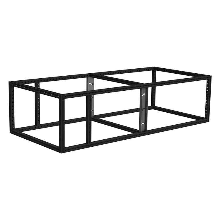 Drawer unit frame for individual configuration of an extra-long drawer unit. The reinforced frame, made from ultra-high strength steel, has a high bearing capacity, which makes it the perfect base for double floors.