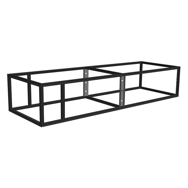 Drawer unit frame for individual configuration of an extra-long drawer unit. The reinforced frame, made from ultra-high strength steel, has a high bearing capacity, which makes it the perfect base for double floors.