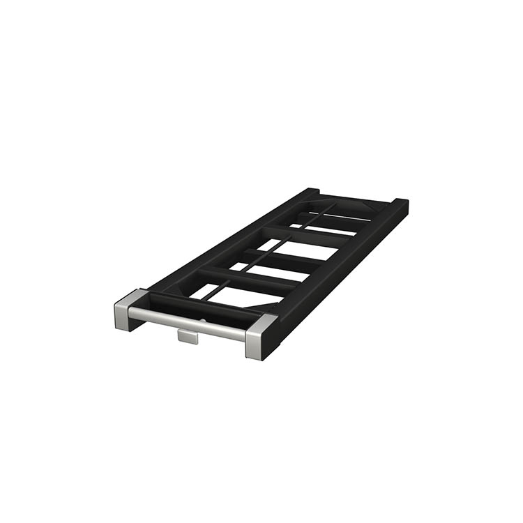 Lightweight and robust base frame made from ultra-high strength steel, with a front in anodized aluminum. A loading platform can be mounted to the base frame for increased functionality.
