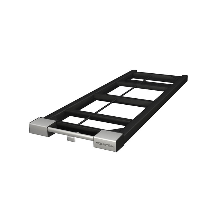 Lightweight and robust base frame made from ultra-high strength steel, with a front in anodized aluminum. A loading platform can be mounted to the base frame for increased functionality.