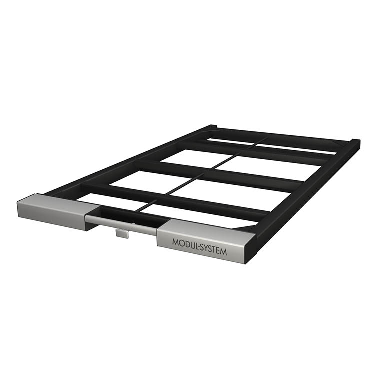 Lightweight and robust base frame made from ultra-high strength steel, with a front in anodized aluminum. A loading platform can be mounted to the base frame for increased functionality.