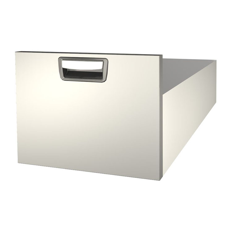 Robust extra-long drawer for assembly in a drawer unit frame. The drawer, made from aluminum, has ball bearings as standard and the mix of fixed and flexible bearings makes the drawer stable and easy to operate.