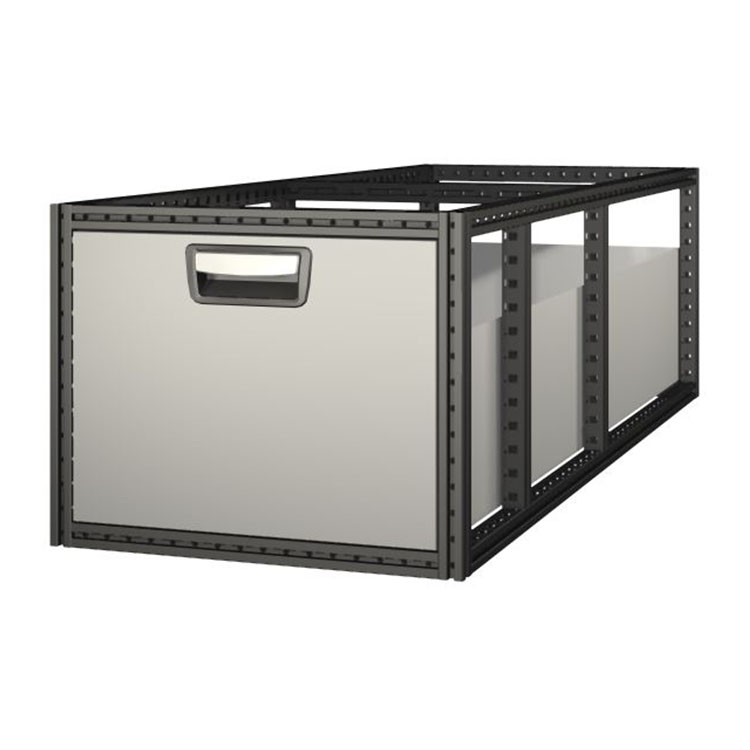 The extra-long drawer units have a frame from ultra-high strength steel and drawers from aluminum. The drawers are equipped with ball bearings as standard, and the mix from fixed and flexible bearings makes them both stable and easy to operate.