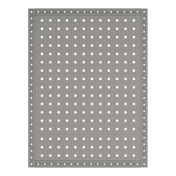 Shelf end supports with tool board are available in several heights and depths. The T-tracks integrated in the profiles are used for securing cargo, attaching accessories and for versatile surface mounting.