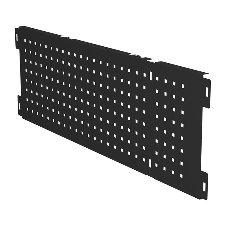 Tool board for extra-long drawer unit. It protects the drawer while contributing to a nice design. The tool board is punched with 9 mm holes at 34 mm pitch spacing, which permits attachment of tool holders and other accessories. Installed using screws (not included).
