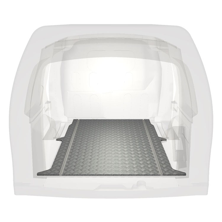 Lightweight and robust extra long floor for a Mercedes Citan / Renault Kangoo with anti-slip aluminum tread plate and cargo rails (longitudinal) for quick and safe installation of racking systems and other accessories.