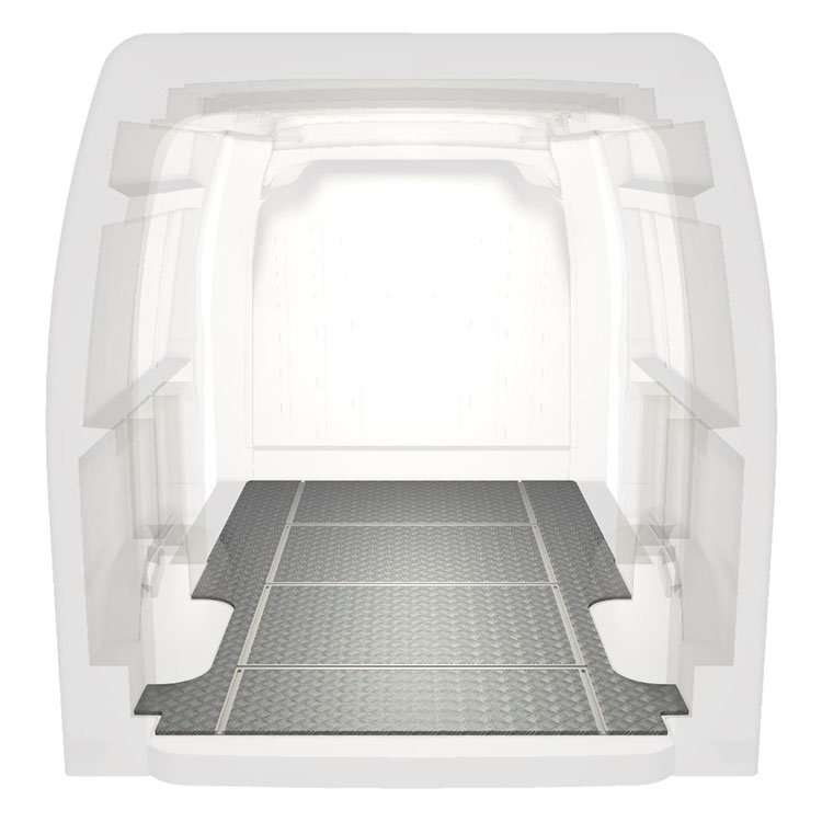 Lightweight and robust van floor with transverse rails for a Renault Master / Opel Movano / Nissan NV400 with anti-slip aluminum tread plate and cargo rails (longitudinal and transverse) for quick and safe installation of racking systems and other accessories.