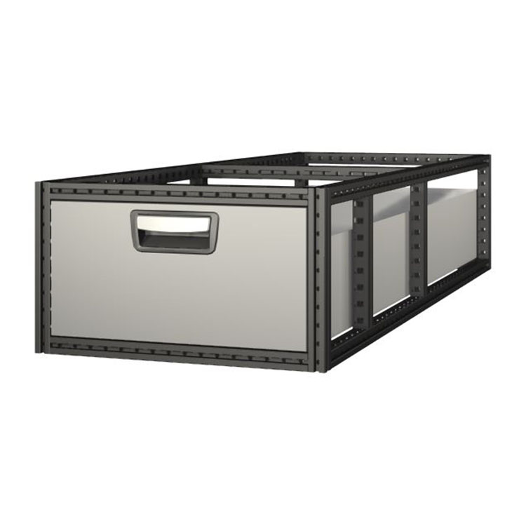 The extra-long drawer units have a frame from ultra-high strength steel and drawers from aluminum. The drawers are equipped with ball bearings as standard, and the mix from fixed and flexible bearings makes them both stable and easy to operate.
