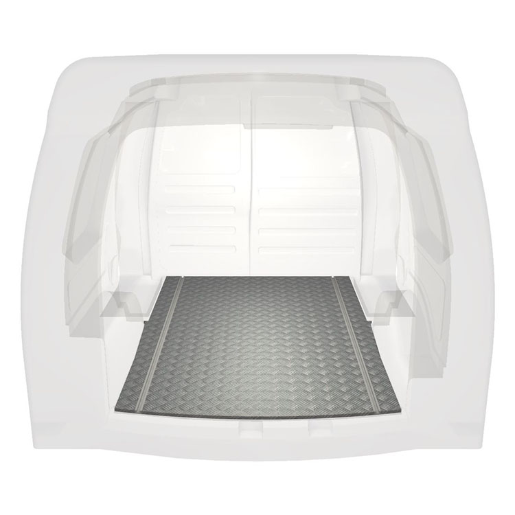 Lightweight and robust extra long floor for a Volkswagen Caddy with anti-slip aluminum tread plate and cargo rails (longitudinal) for quick and safe installation of racking systems and other accessories.