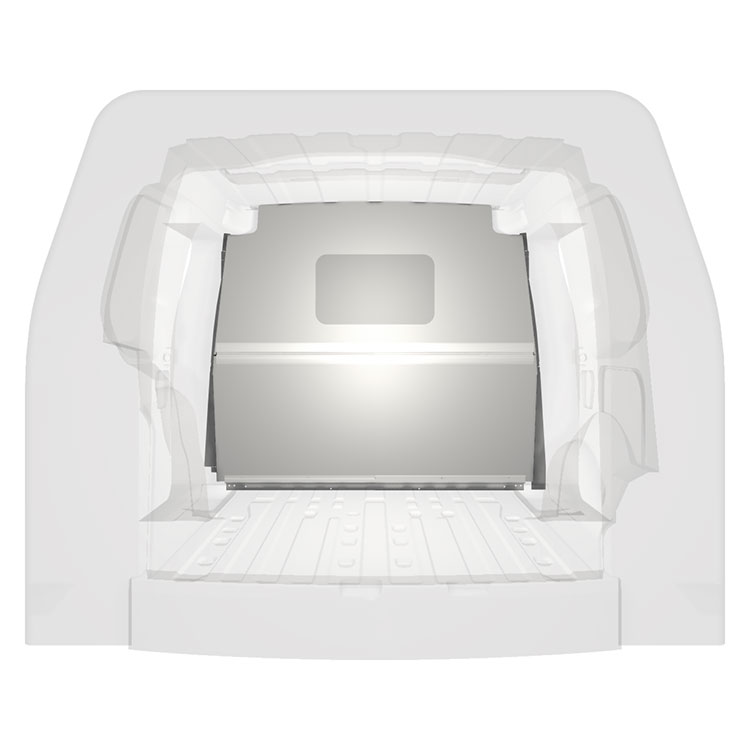 Lightweight, robust and collision safe bulkhead for Caddy Cargo and Caddy Cargo Maxi with a single side door on the right side.