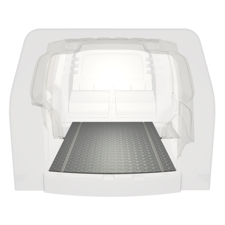 Lightweight and robust XL-floor for a Volkswagen Caddy Cargo 20- with anti-slip aluminum tread plate and cargo rails (longitudinal) for quick and safe installation of racking systems and other accessories.