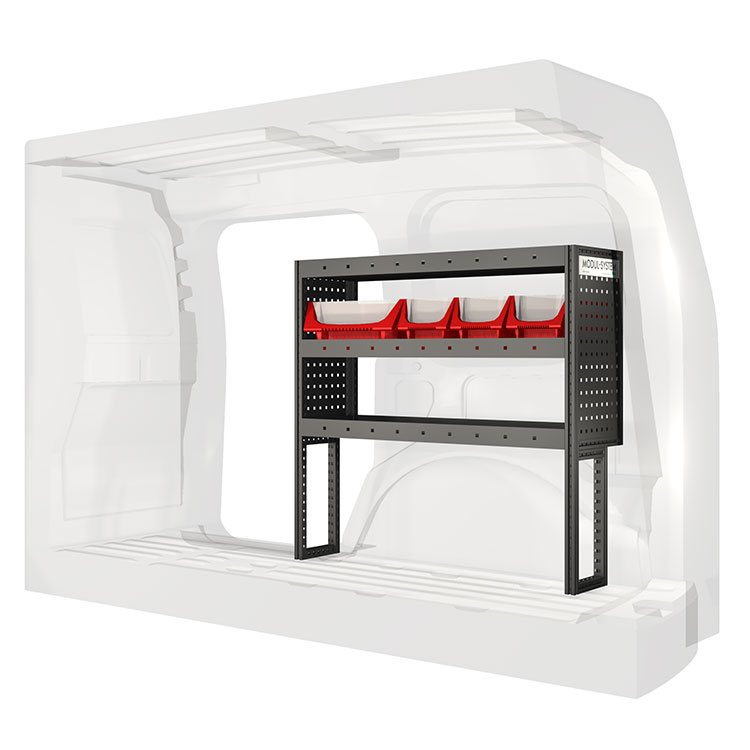 The racking has been specially designed to ensure the optimum fit to the vehicle, as well as the best possible functionality and safety. It has been developed for professional use, is flexible and is intended for service jobs in various types of business. All shelves are equipped with rubber mats, and all drawers with foam plastic liners. Assembly material is included.