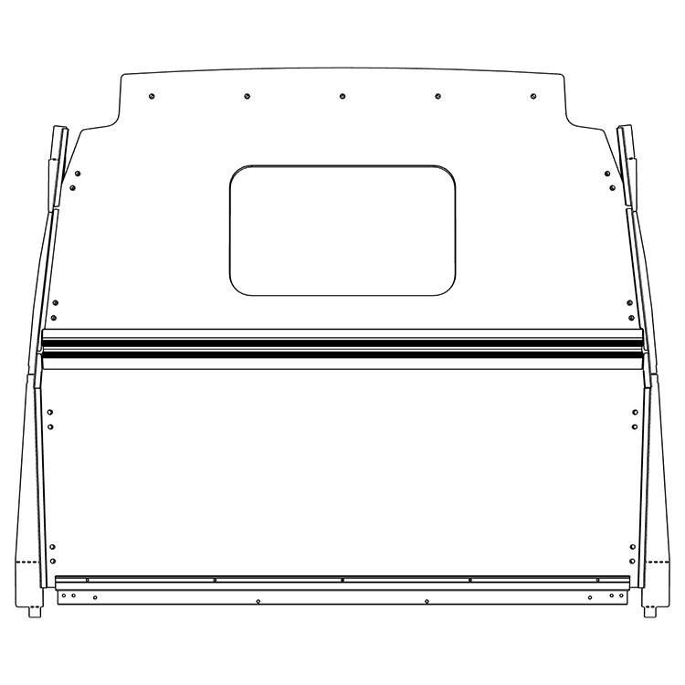 The bulkhead, made from sandwich material, is designed to optimize the space for the driver. The connection profile on the middle has a M8 t-tack, which can be utilized for attaching racking or other accessories.