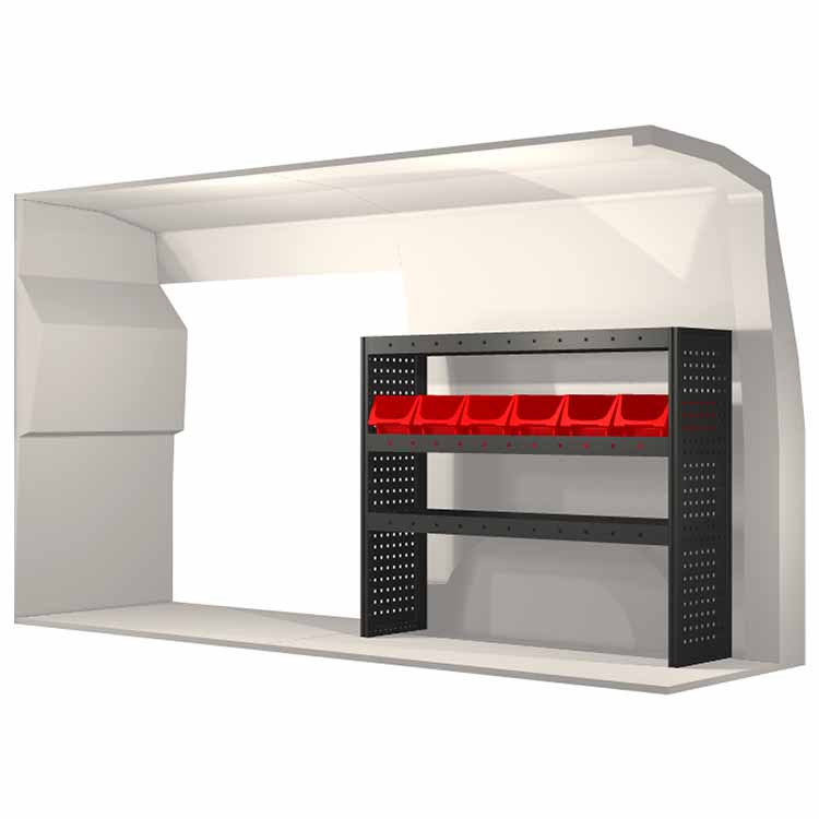 The racking has been specially designed to ensure the optimum fit to the vehicle, as well as the best possible functionality and safety. It has been developed for professional use, is flexible and is intended for service jobs in various types of business. All shelves are equipped with rubber mats, and all drawers with foam plastic liners. Assembly material is included.